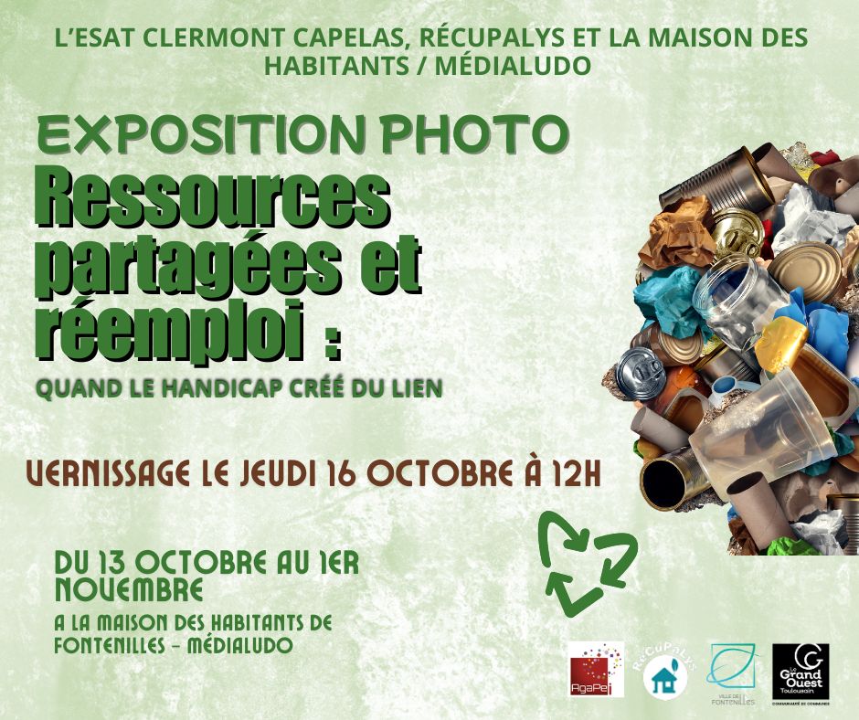 Du 13 au 31 octobre : Exposition à la maison des habitants de Fontenilles sur le partenariat Récupalys/ESAT de Fontenilles, Nous vous attendons nombreux