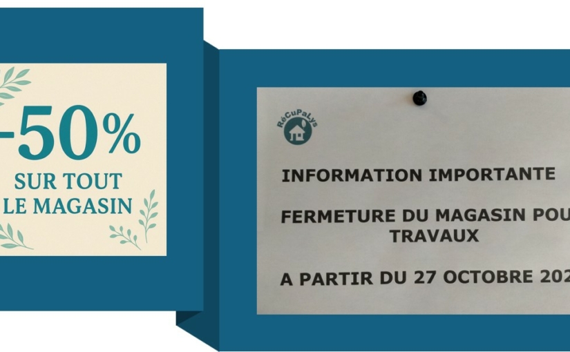 Tout notre magasin à moins 50 % jusqu’au 24 octobre inclu