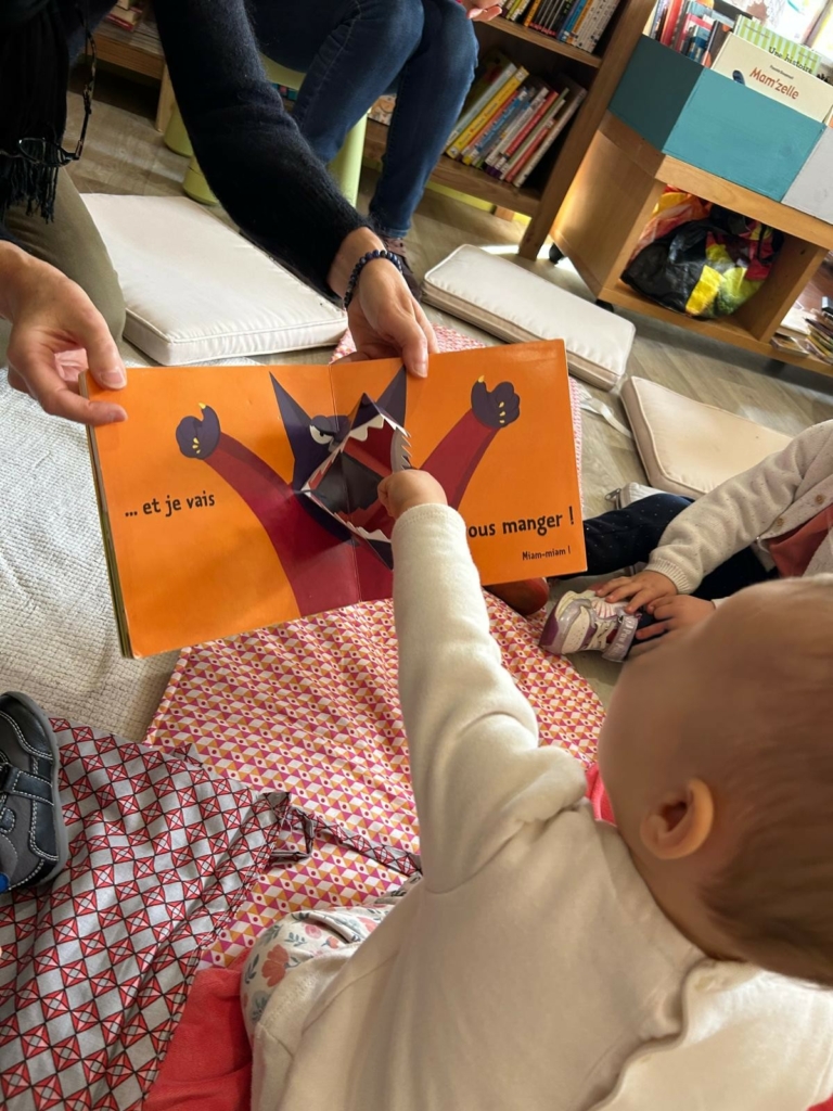C’est donc tout naturellement que chaque mois les bénévoles proposent une séance d’une heure environ de lecture aux bébés et leurs asssitantes maternelles du secteur