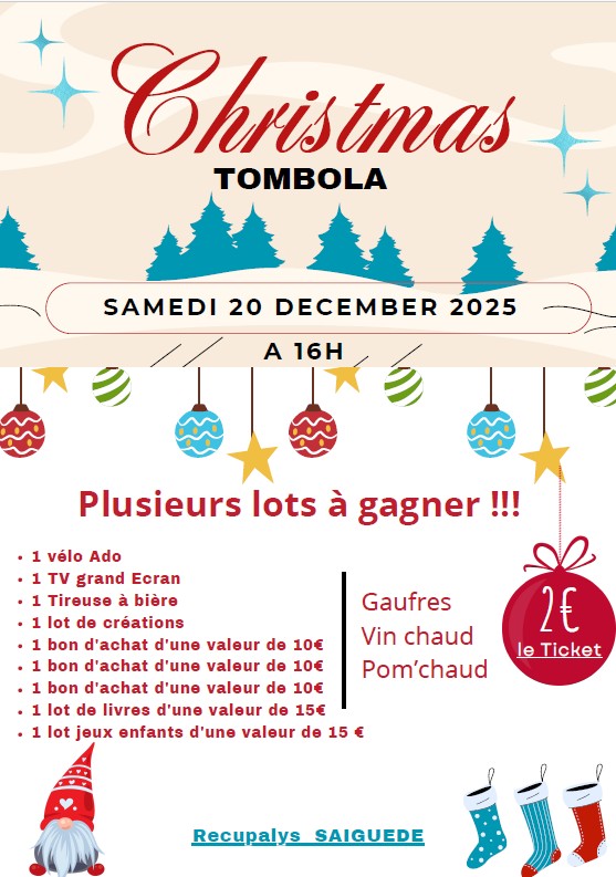 Le tirage au sort aura lieu le 20 Décembre 2025, dans les locaux de l’association Récupalys – 4 rue