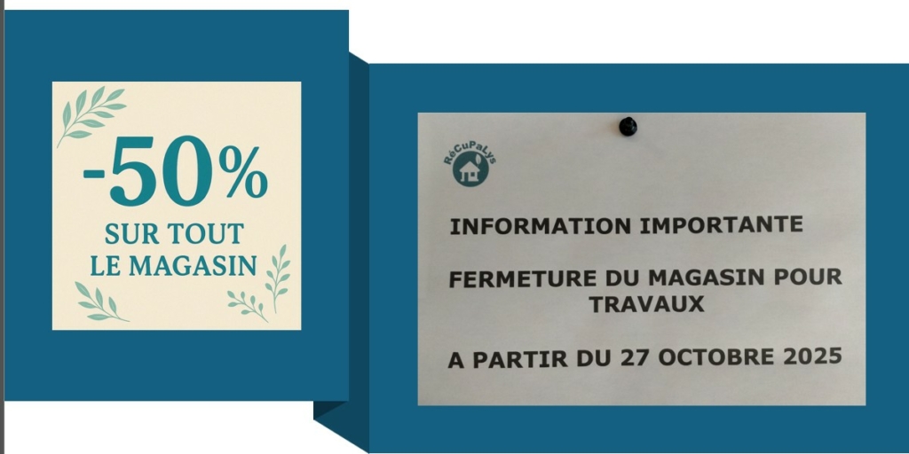 En raison de travaux, notre magasin sera fermé temporairement et pour une durée indéterminée à compter du 27 octobre