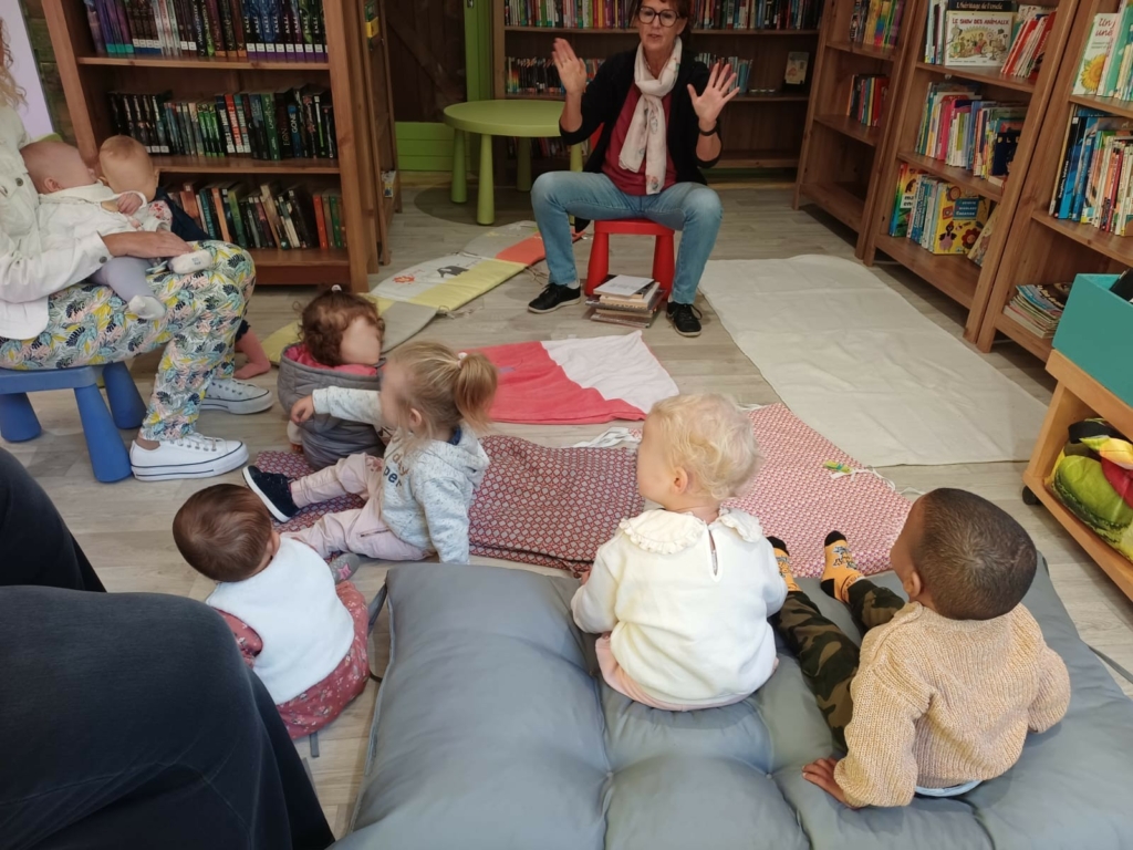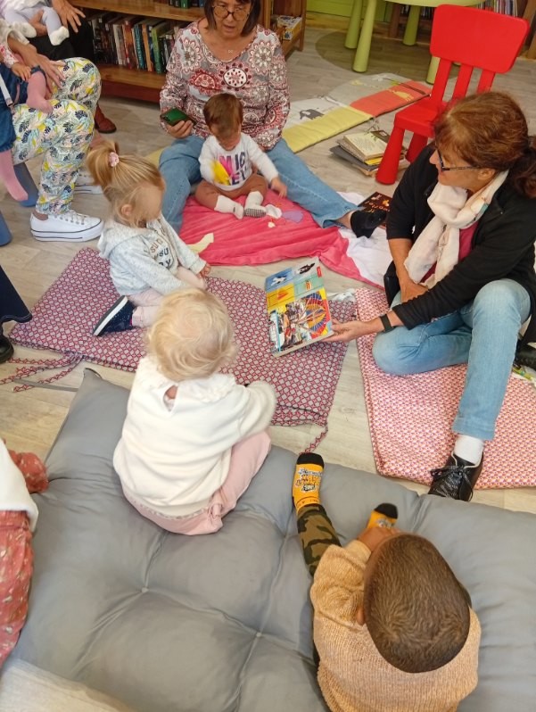 Des comptines pour commencer et clore la séance, des livres avec plein d’images : juste éveiller des émotions