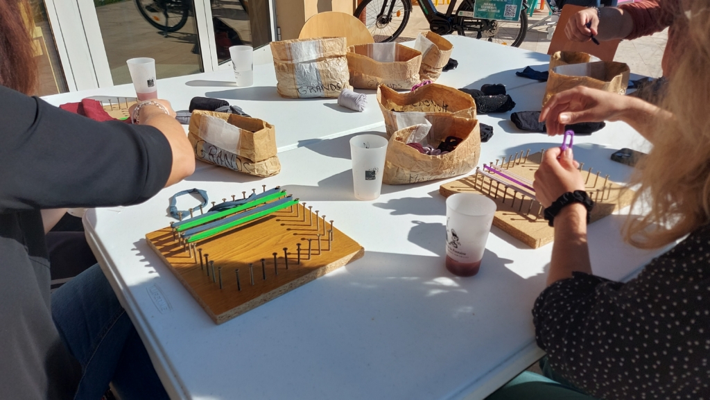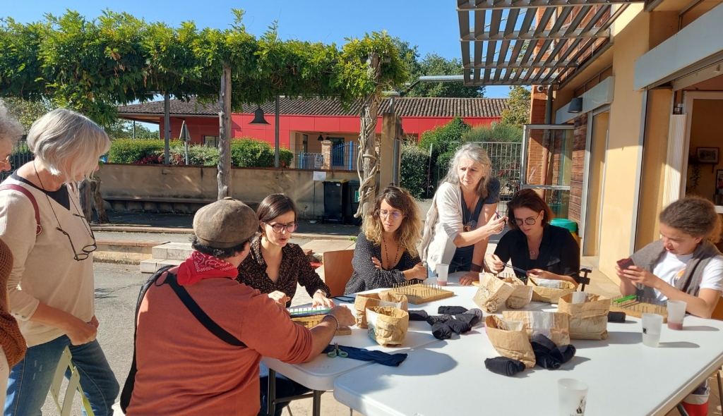 Plusieurs bénévoles ont animé des ateliers de réemploi : confection de totebag, coussins et tawashis