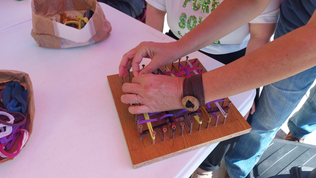 Plusieurs travailleurs de l’ESAT ont pu lors de ce vernissage, initier ceux qui le souhaitaient à la confection de tawashis